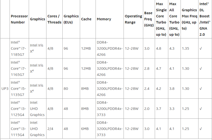 Made for thin-and-light Windows and ChromeOS laptops, Intel claims that its processors “deliver up to 2.7x faster content creation, more than 20% faster office productivity and more than 2x faster gaming plus streaming in real-world workflows over competitive products”. The Tiger Lake CPUs will offer clock speeds of up to 4.8GHz, while the integrated graphics will offer up to 96 EUs and up to 16MB of L3 cache.