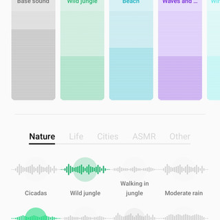 Lastly, O Relax is a built-in app with three features to help you destress: listen, unwind, and explore. In the listen section, you can mix up to 6 sounds from several categories including nature, life, cities, ASMR, and other when you select any ambient sound or music. The unwind section offers four stress-relief games, a bubble popper, deep breathing, and coloring. In the explore section, you'll be able to listen to various sounds of different cities, including Beijing, Shenzhen, Bangkok, Tokyo, and Reykjavik. An equalizer is available for you to adjust the tone of the sounds from quiet to lively.